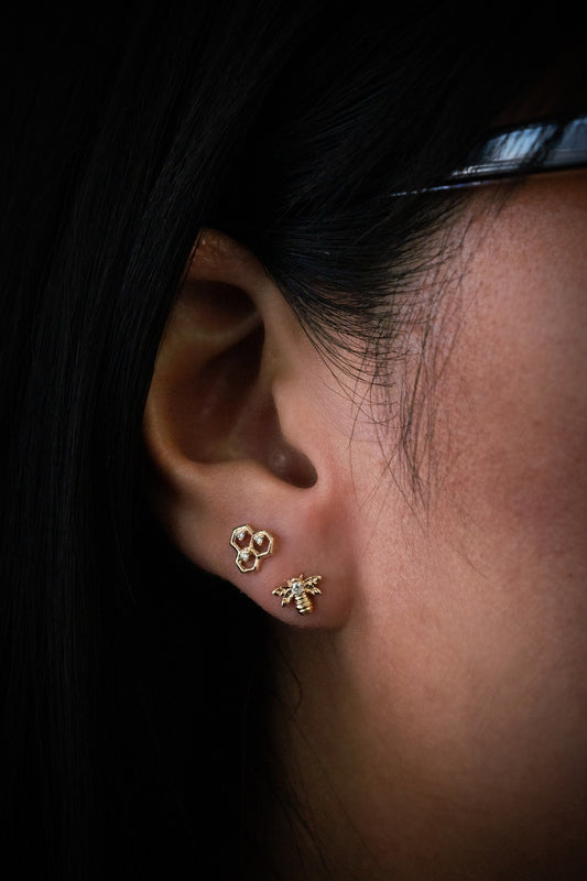 Bee and Honey Comb Diamond Stud Earrings