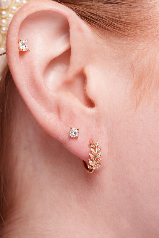 Small Leaf Diamond Stud Earrings