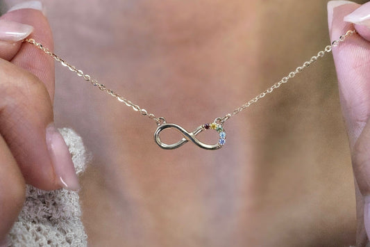 Rainbow Infinity Moissanite Solid Gold Pendant with 18 Inch Chain