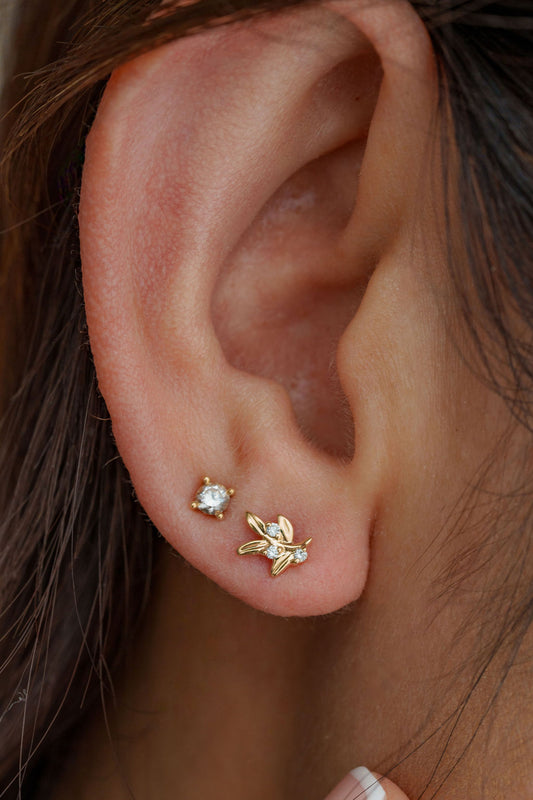 Small Leaf Diamond Stud Earrings