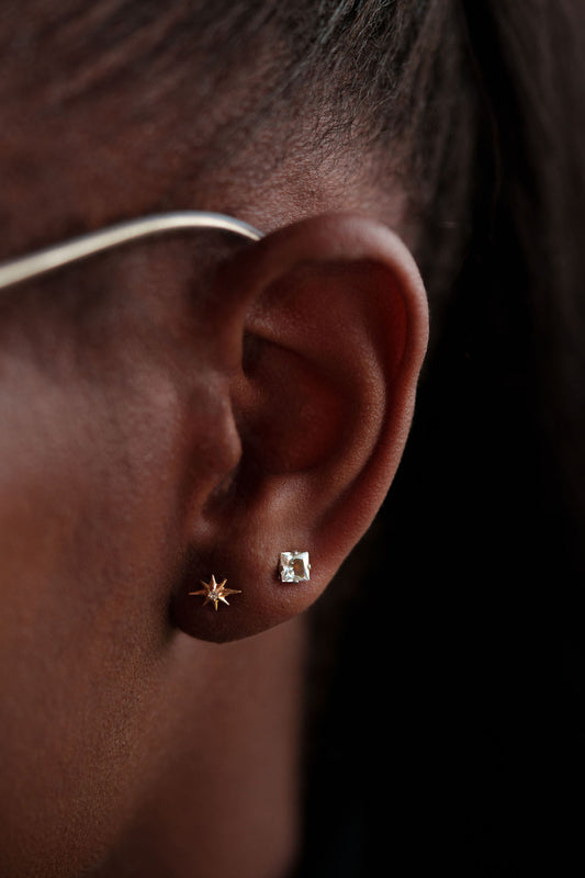 Boucles d'oreilles à tige en diamant et feuille botanique